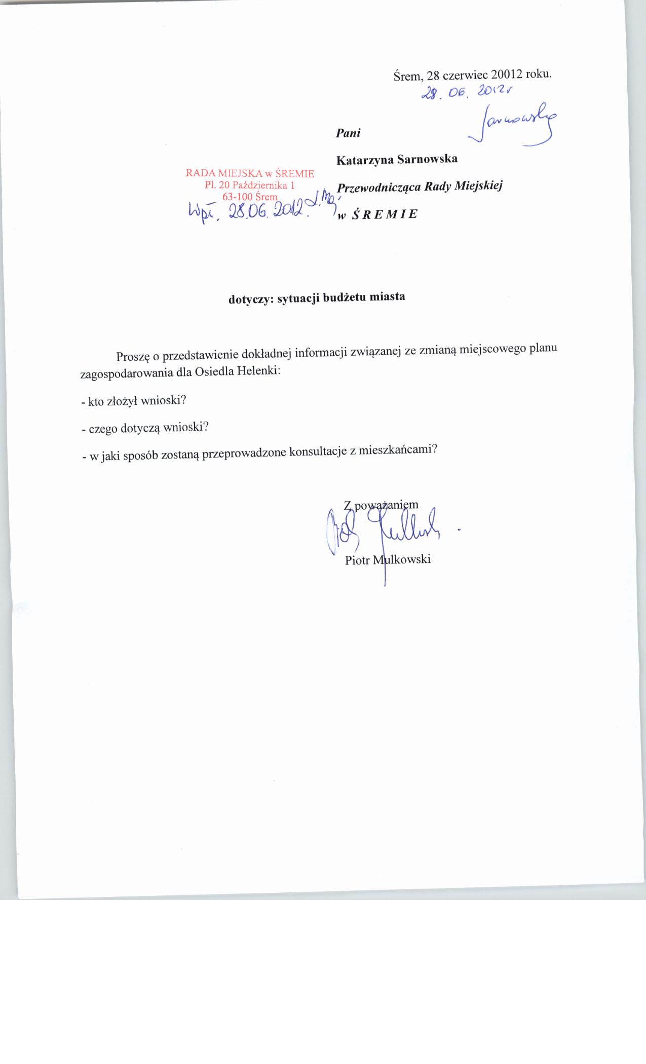 nazwa: treść interpelacji radnego Piotra Mulkowskiego