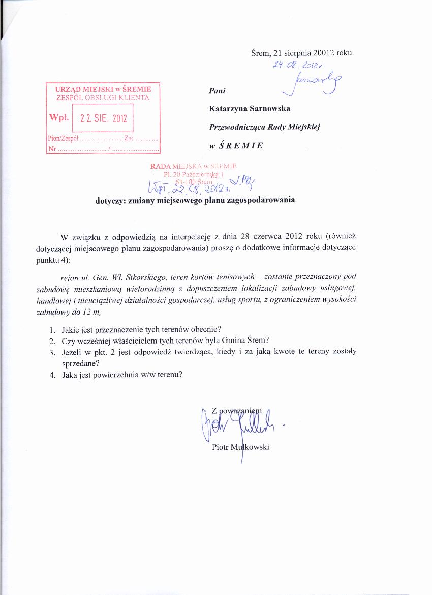 nazwa: interpelacja radnego P.Mulkowskiego - uszczegółowienie jego wniosków