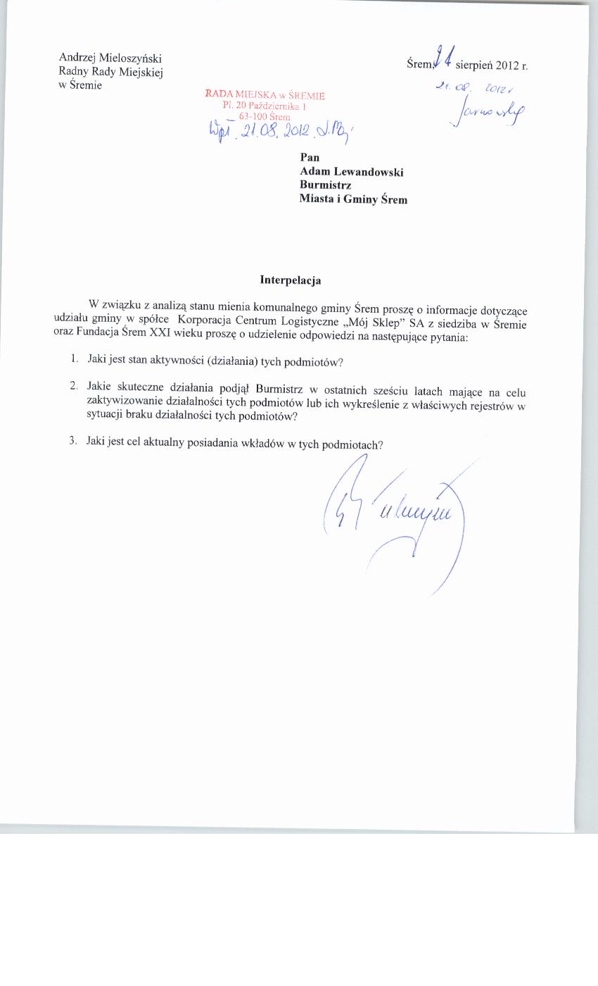 nazwa: interpelacja nr 1 A.Mieloszyńskiego