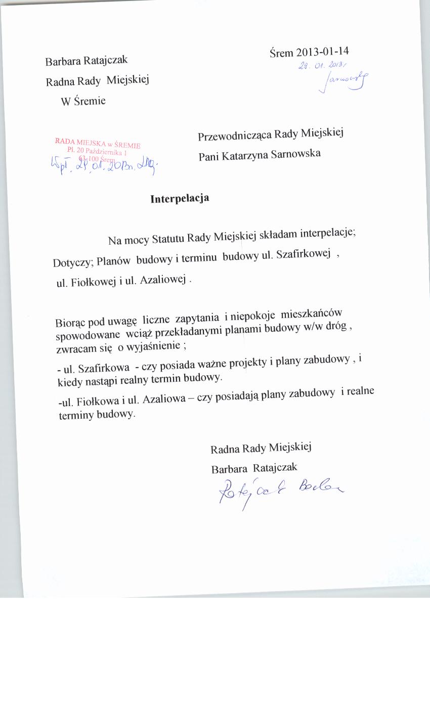 Treść interpelacji nr 2 radnej B.Ratajczak Załącznik dokumentu Autor dokumentu: Longina Maj Udostępnił: