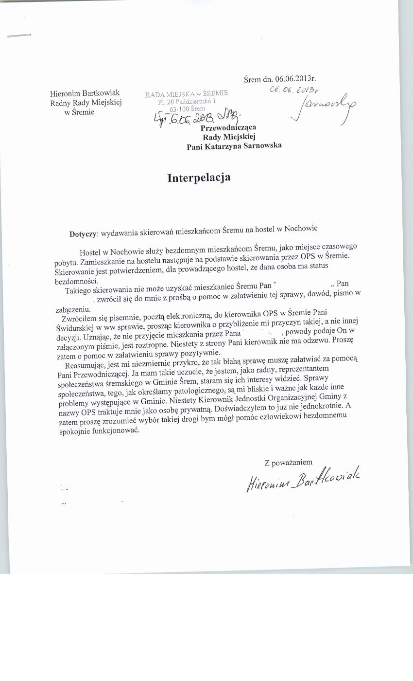 treść interpelacji radnego H.Bartkowiaka Załącznik dokumentu Autor dokumentu: Longina Maj Udostępnił: