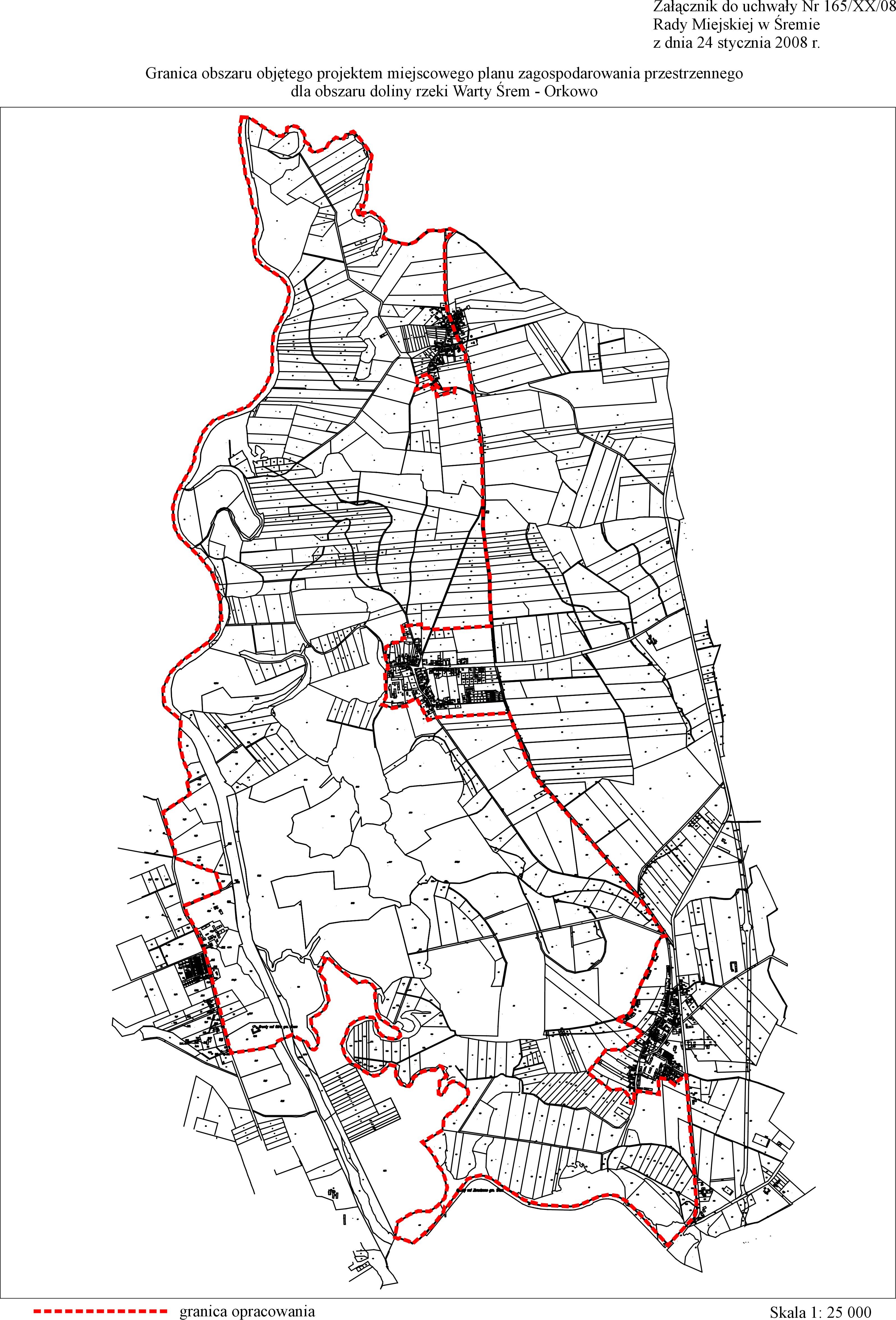 Uchwała numer 165XX08 w sprawie przystąpienia do sporządzenia miejscowego planu zagospodarowowania przestrzennego dla obszaru doliny rzeki Warty Śrem - Orkowo załącznik 1.jpg