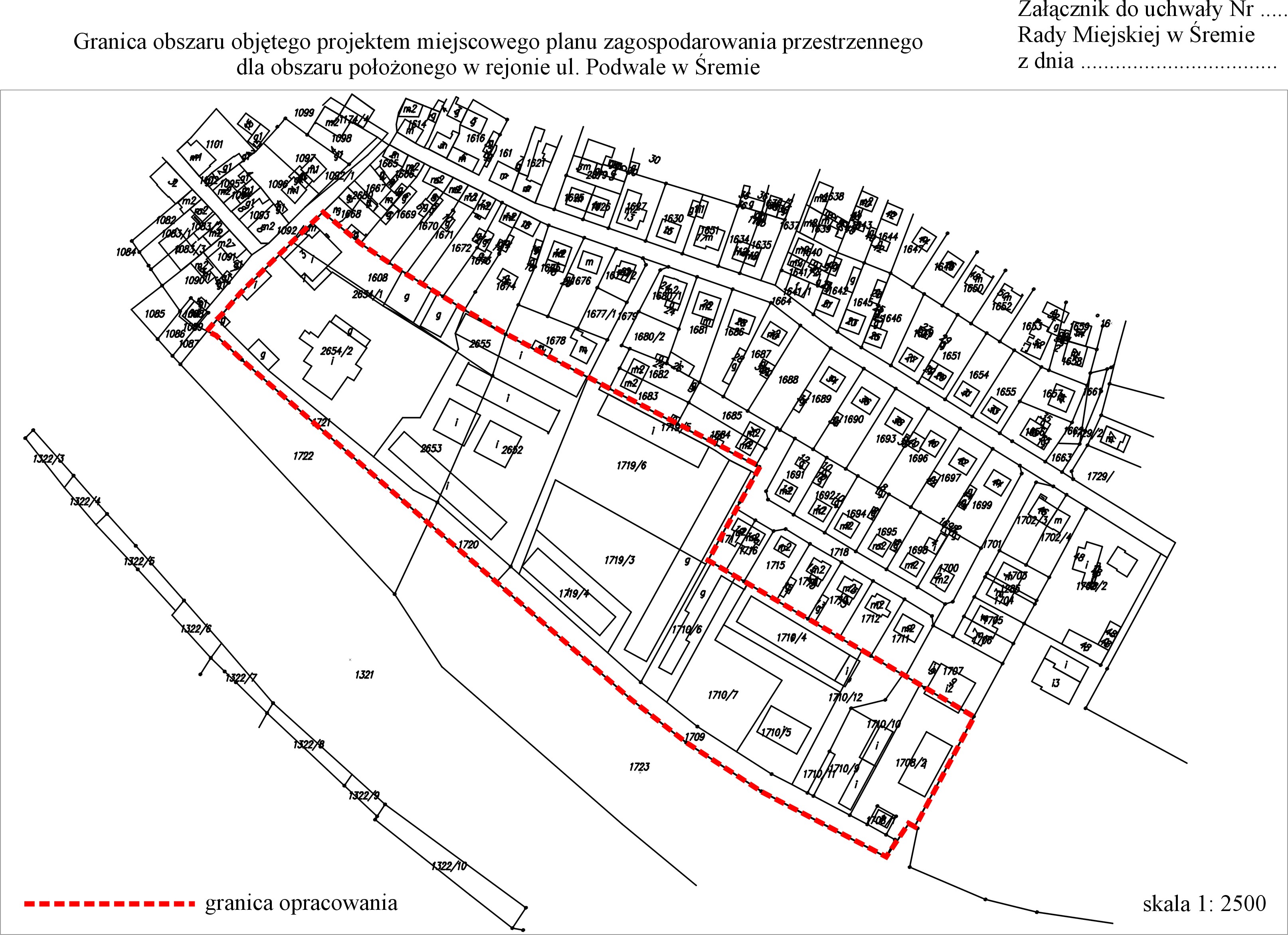 Uchwała numer 175XXI08 w sprawie przystąpienia do sporządzenia miejscowego planu zagospodarowania przestrzennego dla obszaru położonego w rejonie ul. Podwale w Śremie Załącznik 1.jpg