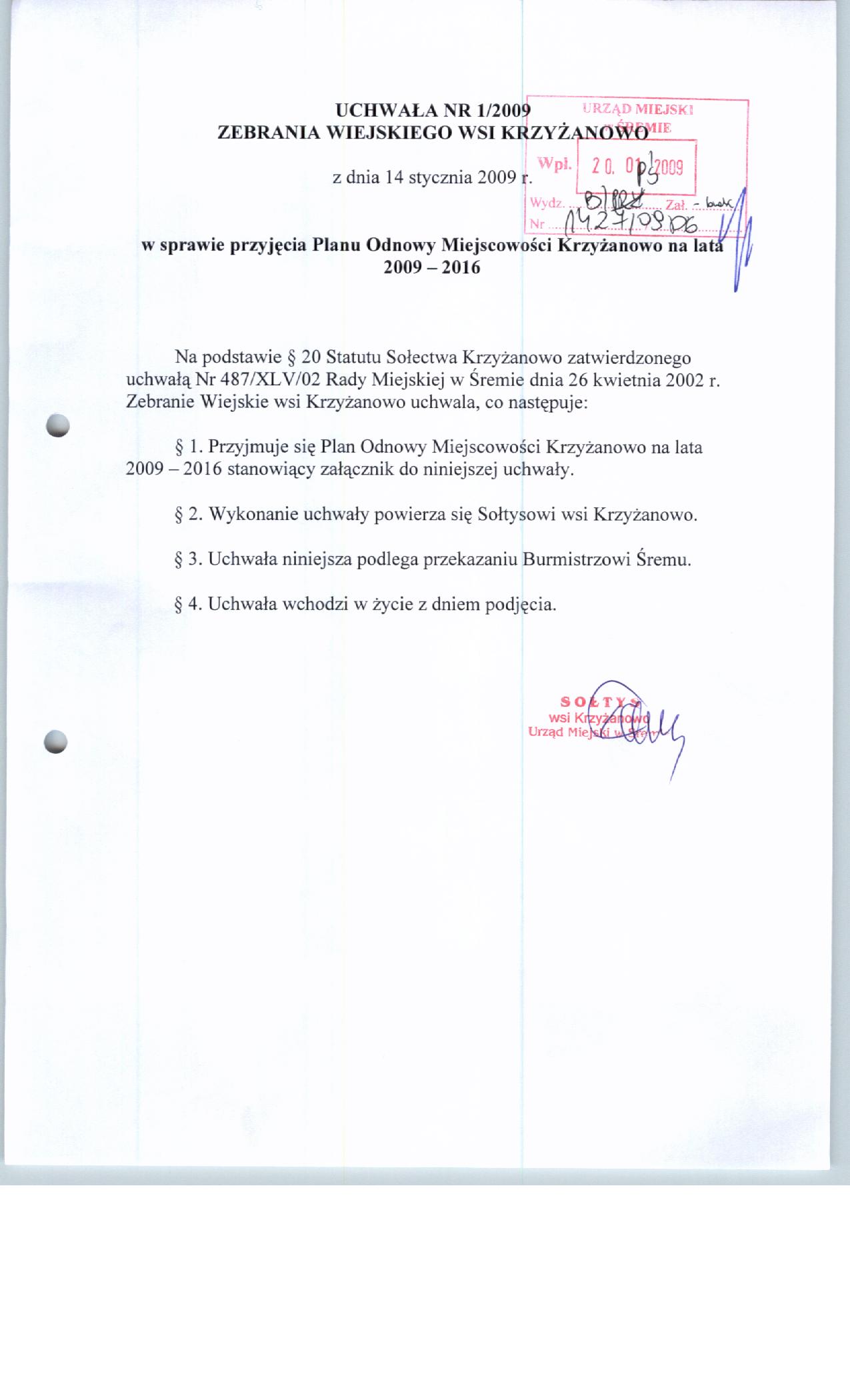Ucchwała zebrania wiejskiego Załącznik dokumentu Autor dokumentu: Zofia Kłak Udostępnił: