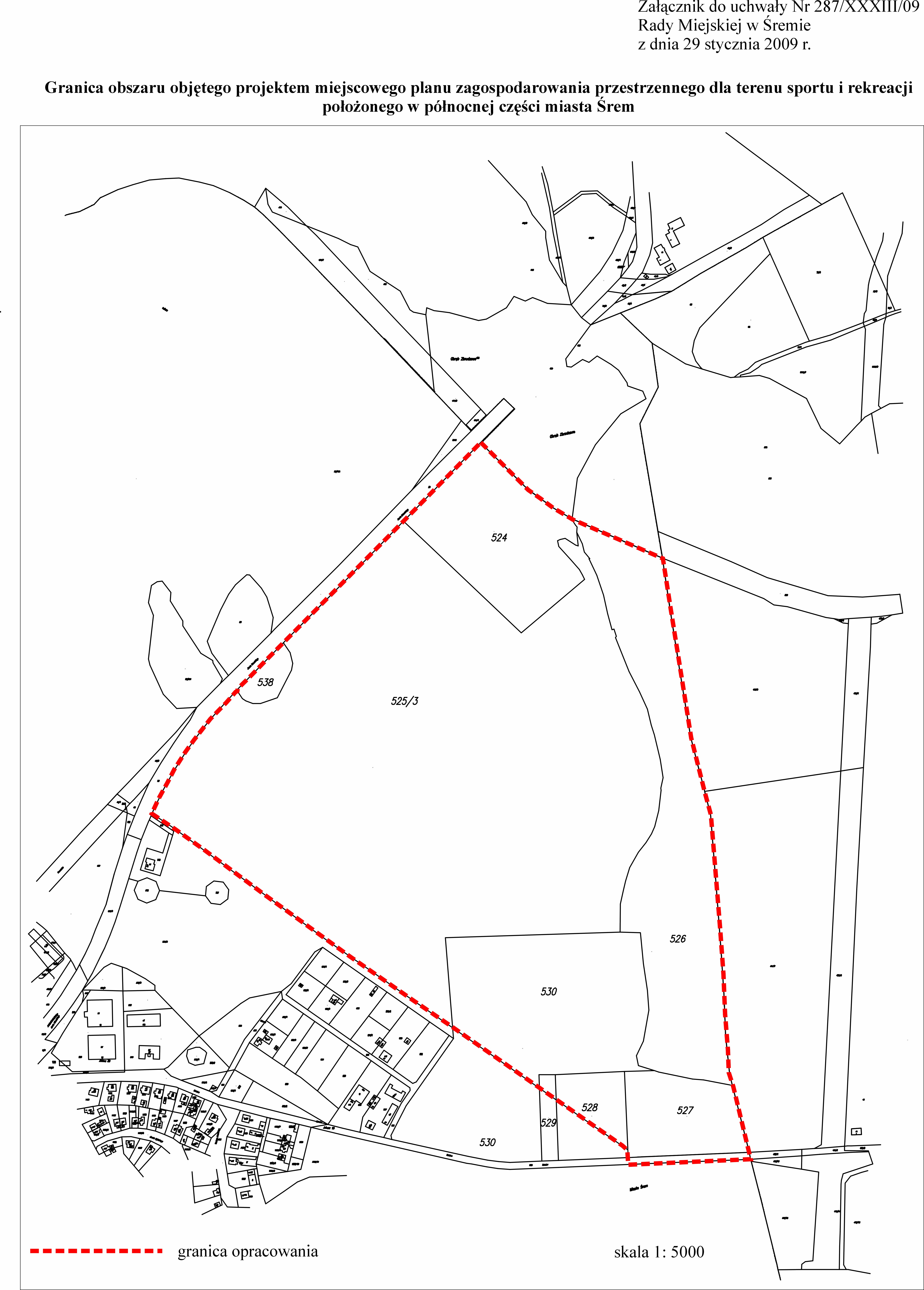 Uchwała nr 287-XXXIII-09 z dnia 29 stycznia 2009 r. w sprawie przystąpienia do sporządzenia miejscowego planu zagospodarowania przestrzennego dla terenu sportu i rekreacji położonego w północnej części miasta Śrem - załącznik do uchwały