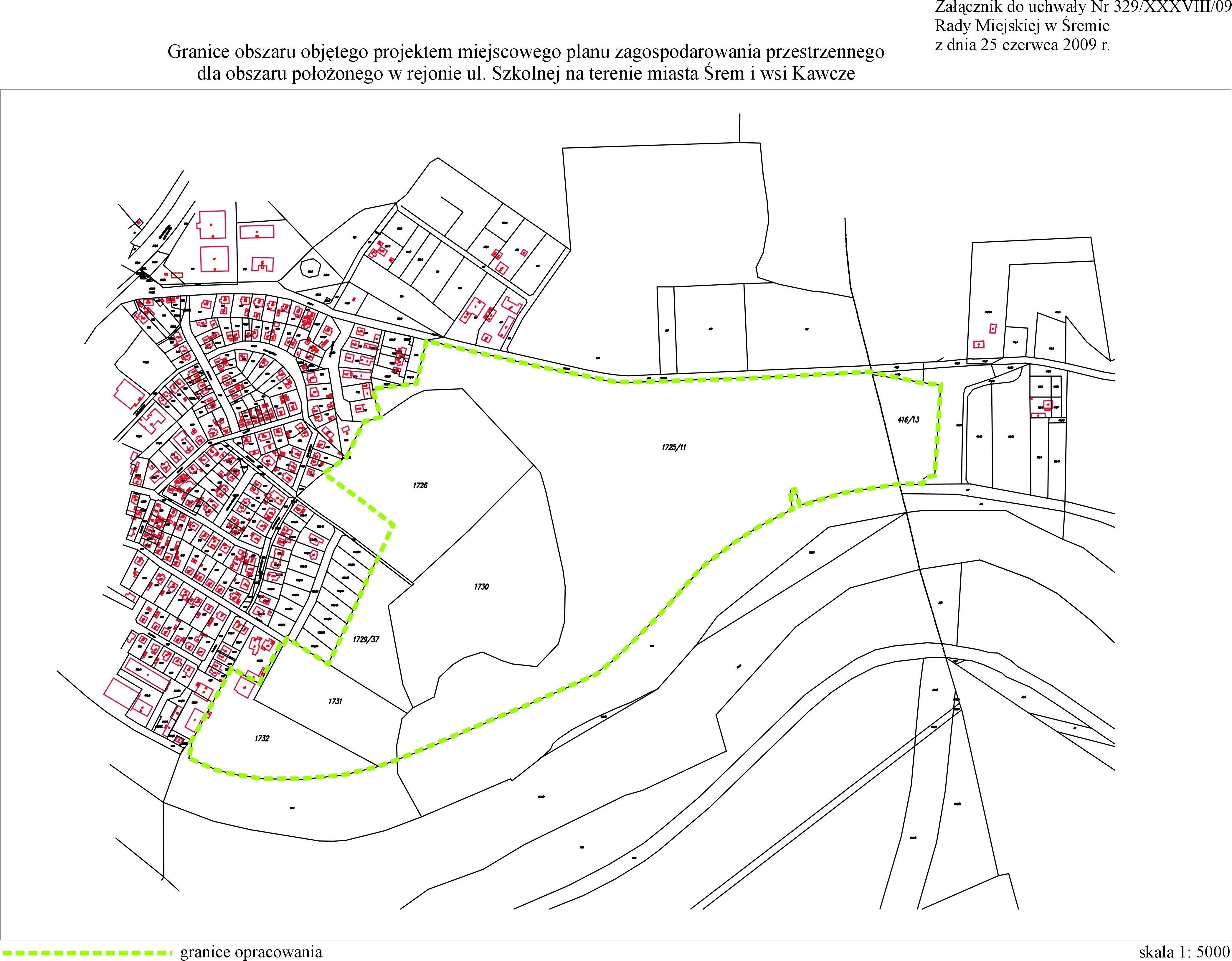 Uchwała Nr 329-XXXVIII-09 w sprawie przystąpienia do sporządzenia miejscowego planu zagospodarowania przestrzennego dla obszaru położonego w rejonie ul. Szkolnej na terenie miasta Śrem i wsi Kawcze.