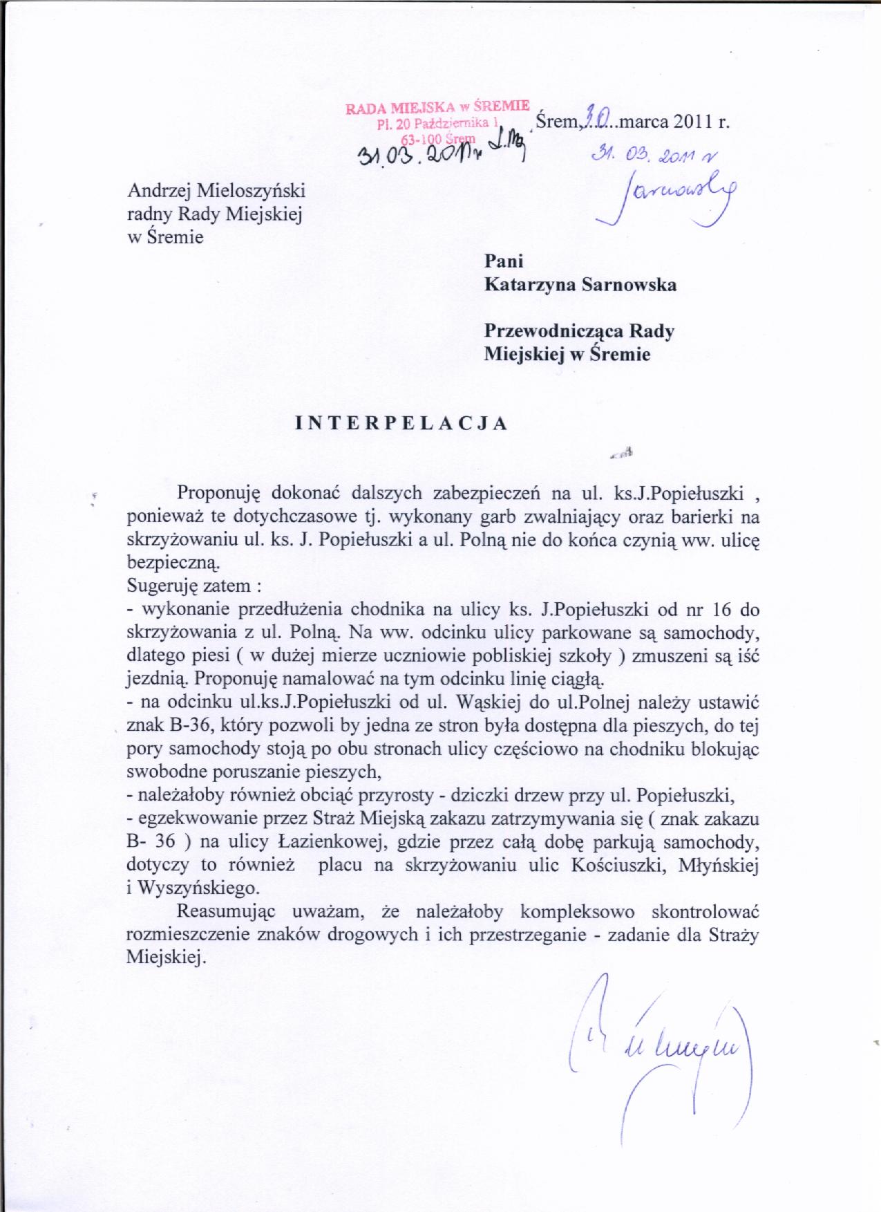 nazwa: treść 2 interpelacji radnego A.Mieloszyńskiego