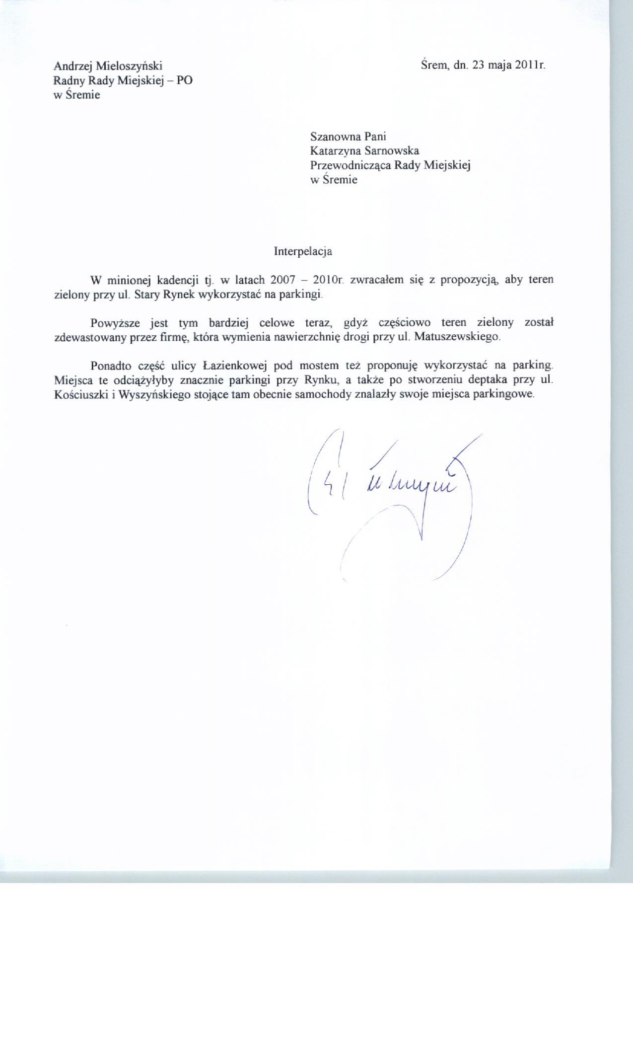 nazwa: treść drugiej interpelacji radnego Andrzeja Mieloszyńskiego