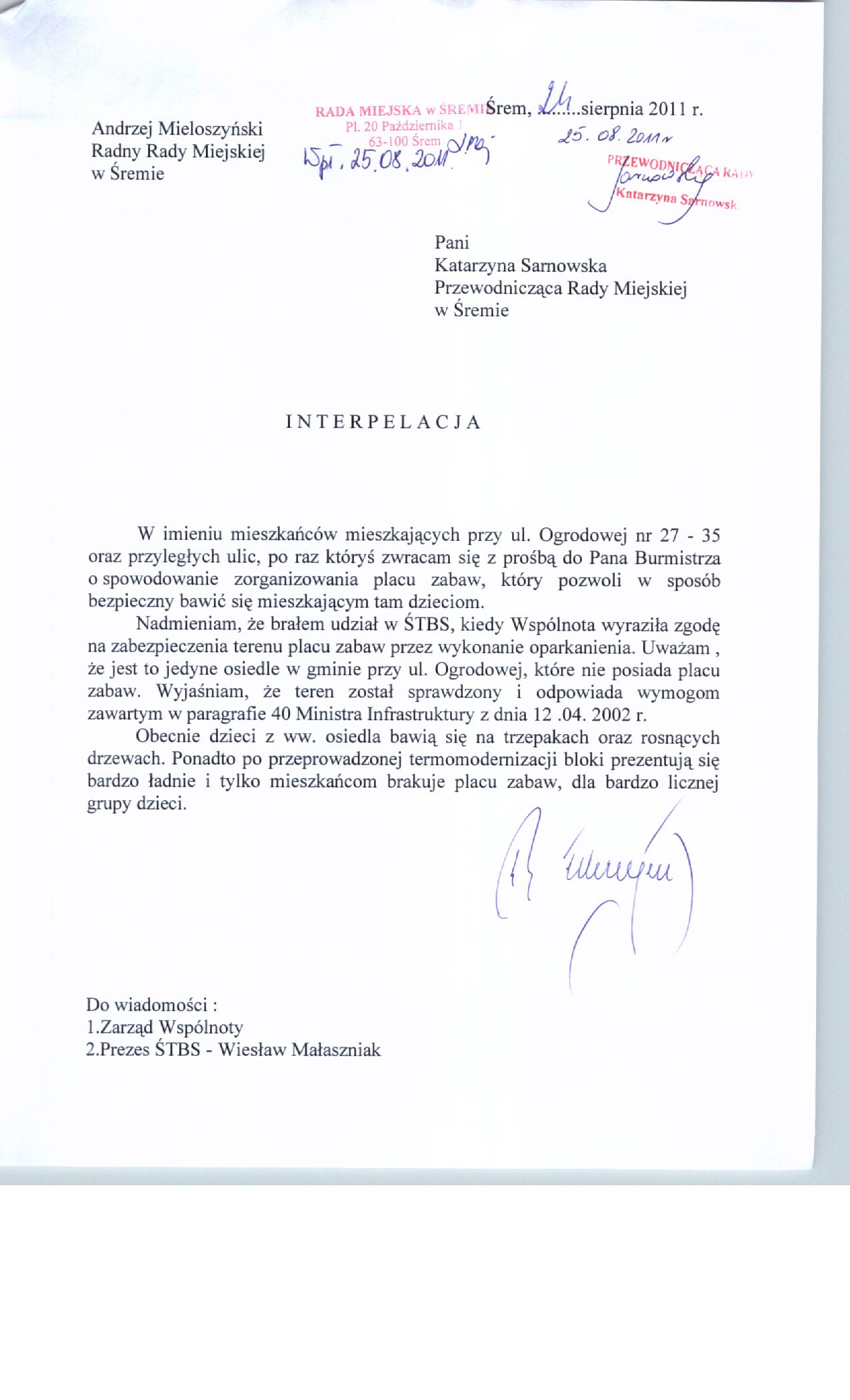 nazwa: treść interpelacji nr 3 radnego A.Mieloszyńskiego