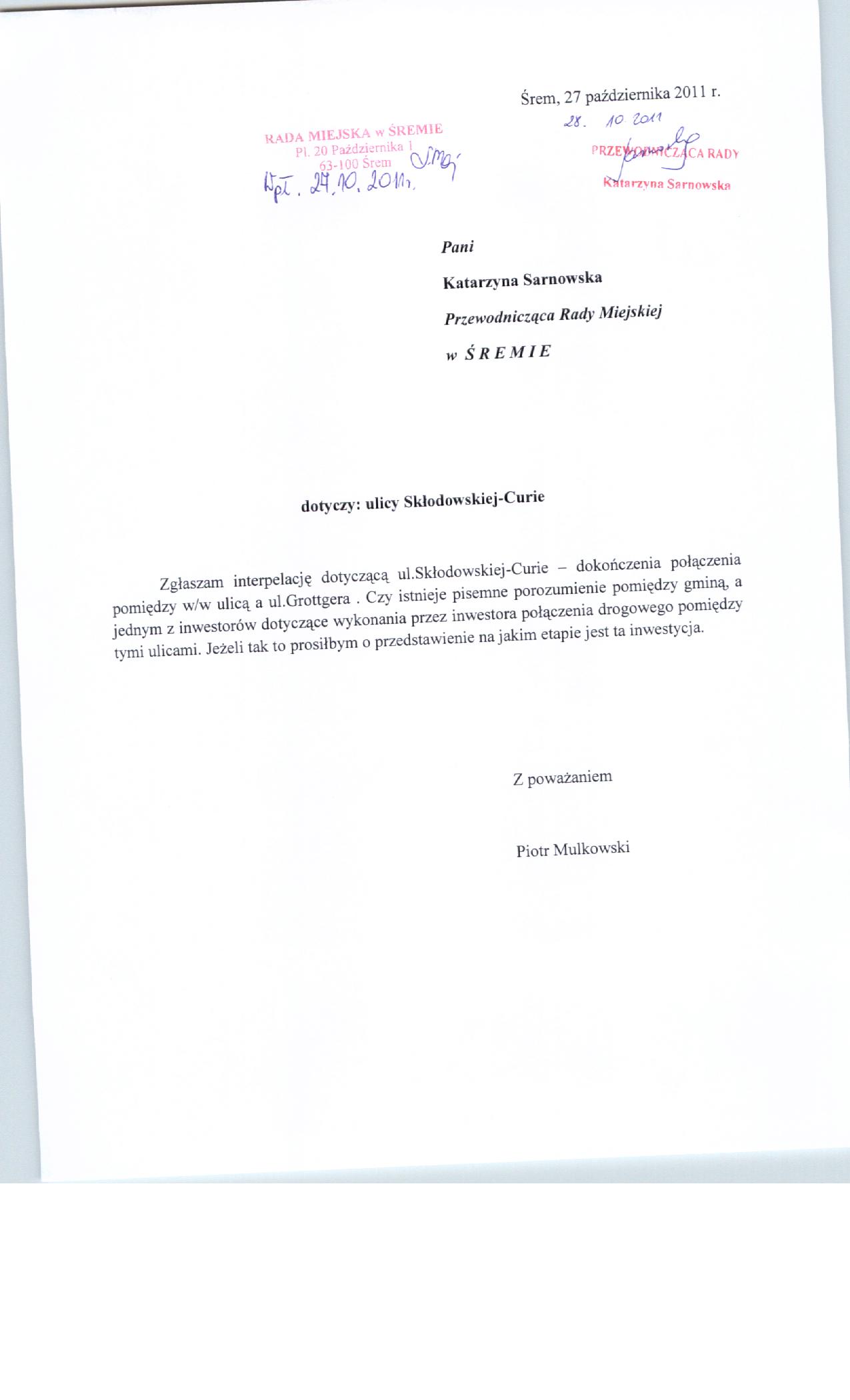 nazwa: treść interpelacji radnego Piotra Mulkowskiego