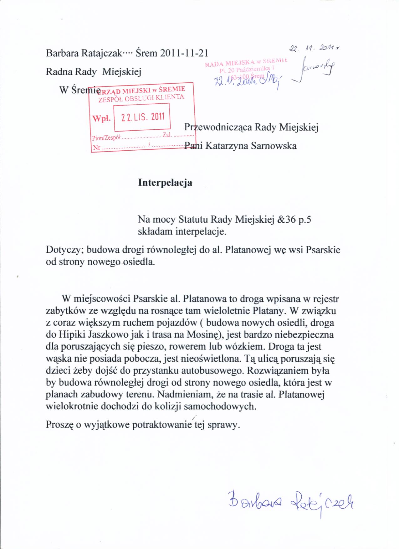 nazwa: Treść interpelacji radnej Barbary Ratajczak
