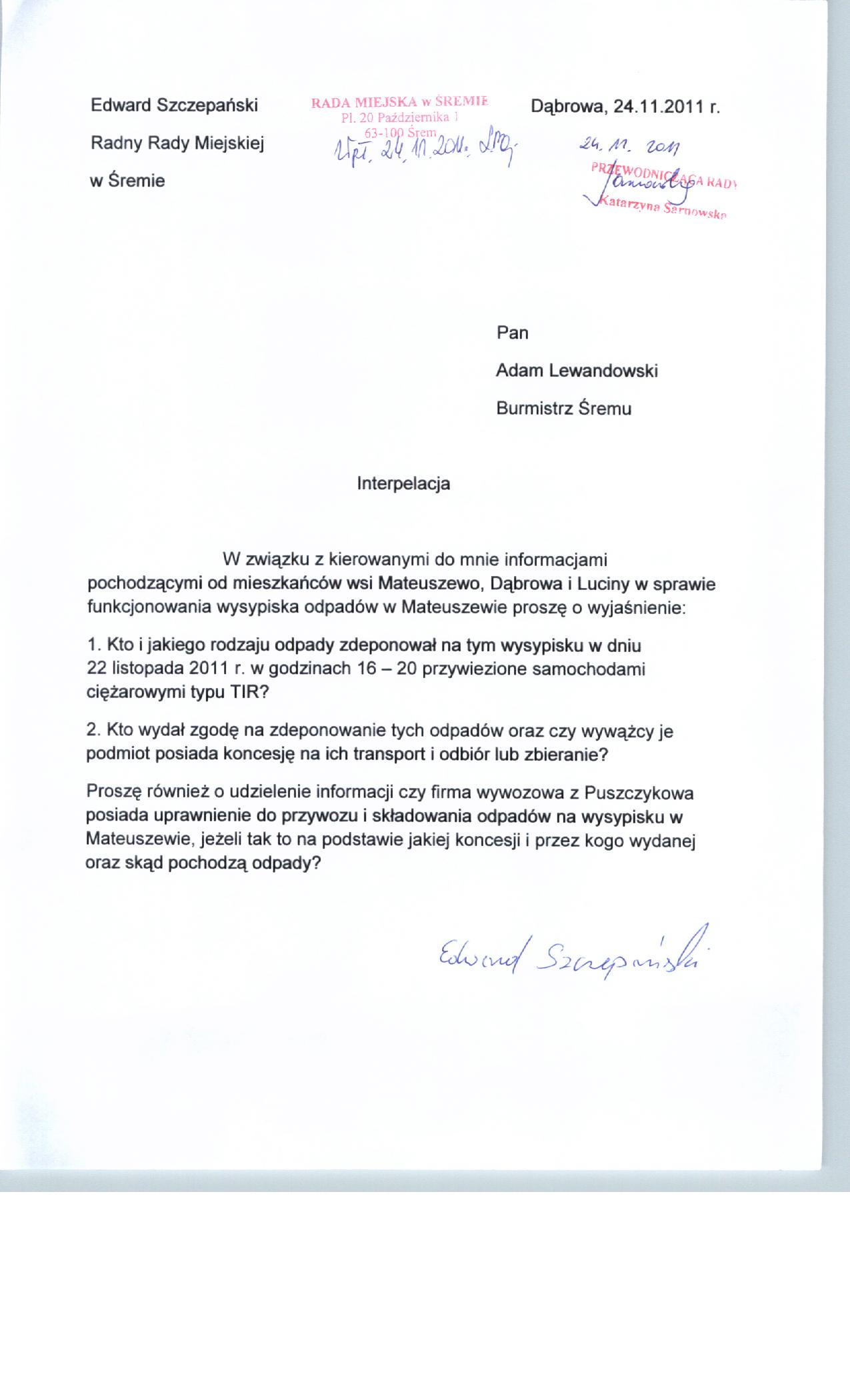 nazwa: treść interpelacji radnego Edwarda Szczepańskiego